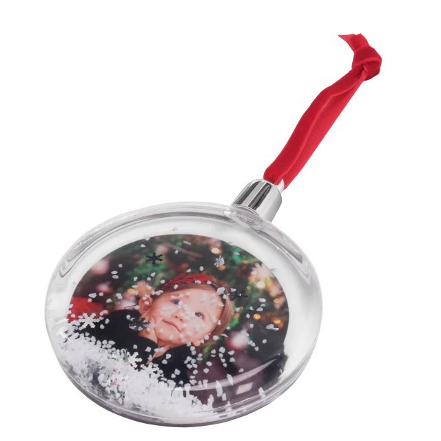 Trim your tree with a personalized Snow Globe Ornament. Add your favorite image to create a picturesque Christmas decoration for all to see.